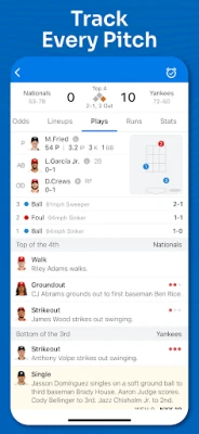 Baseball for MLB Superfans! Get all the stats and all the plays for every game, every day. Lightning fast updates, immersive play-by-play, complete player & team stats, odds, news, standings, & much more. Our clean & intuitive design is lightweight, fast, and fully customizable. Enjoy every MLB game - without the clutter.