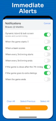 • Immediate game alerts for scores, close games, extra innings, and more!